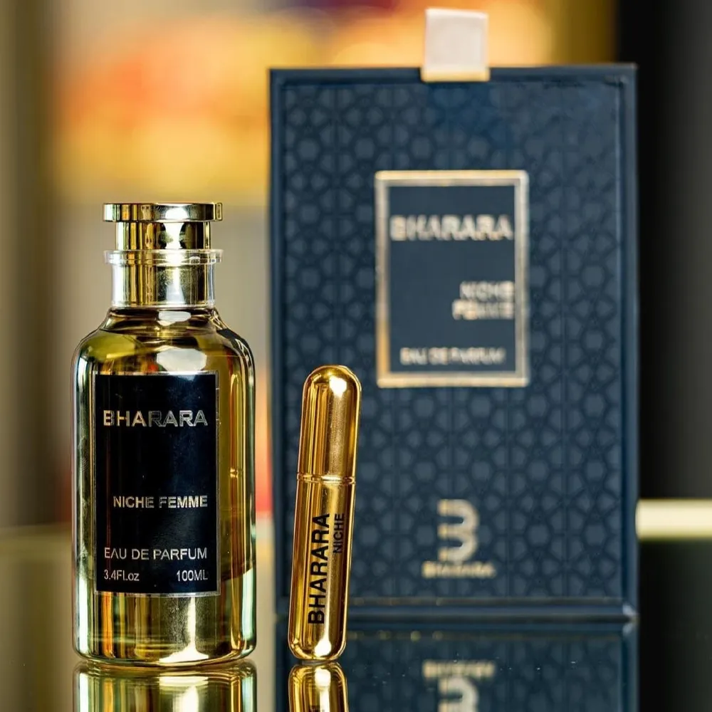 Bharara Niche Femme (2021) es un perfume femenino frutal–rosado con un lado ahumado/inciensado que lo hace más elegante que un dulce común. Abre con un acorde de frutas jugosas (sensación tipo frutos rojos y fruta madura) que se siente brillante y femenino, y en minutos aparece el corazón: rosa turca protagonista con incienso, dando una vibra sofisticada, un poco misteriosa y “de noche”.